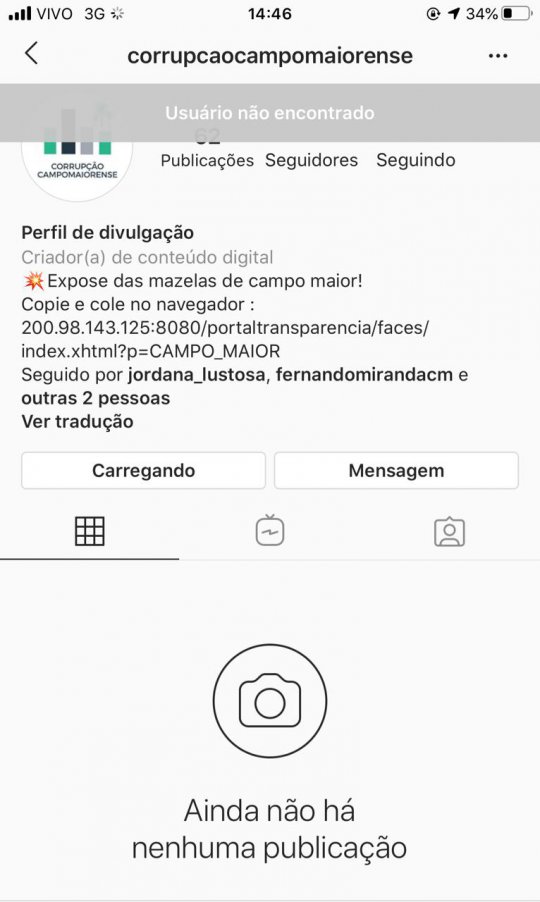 Conta já foi desativada pelo proprietário