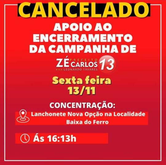 Representantes do Diretório do MDB, que também tem candidato a prefeito do município, também usou redes sociais para dizer que não vai realizar eventos. O partido não tinha nenhum evento programado para esta reta final de campanha.