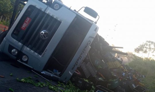 Acidente com caminhão de verduras causa congestionamento na BR-343 em Altos-PI
