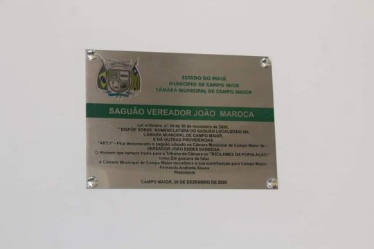 O Saguão de entrada do prédio legislativo recebeu o nome do vereador João Eudes Barbosa (In Memoriam), o popular João Maroca.