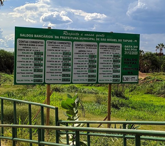 Prefeito de São Miguel do Tapuio divulga saldo de contas da prefeitura em outdoors