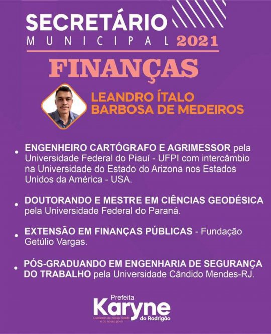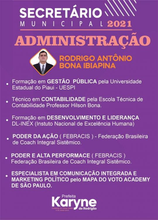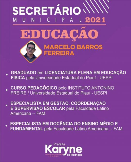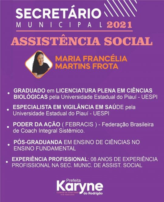 A prefeita eleita de Cocal de Telha/PI, Karyne do Rodrigão(PP), anunciou nesta segunda-feira (04) a relação dos nomes que farão parte do primeiro escalão de sua gestão conduzindo as secretarias municipais. Segundo a gestora os critérios adotados para tais nomeações foram puramente técnicos, administrativos e de confiança.