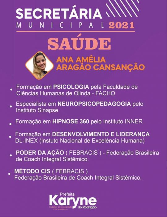 "Estas pastas são gestoras, essenciais e de grande importância para o bom andamento da gestão, como também de nomeação prioritária a todo início de mandato. Passaremos agora para o processo de transição, que é necessário, obrigatório por lei e tem prazo máximo até a data de 31 de março deste ano. Neste período de transição, teremos a oportunidade de nos atualizar de tudo que for necessário para bem conduzir a administração da nossa querida cidade e com muita cautela, equilíbrio e pé no chão, podermos evoluir e trabalhar muito para o nosso município e nosso povo", explica a gestora.