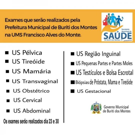 A Prefeitura Municipal de Buriti dos Montes, através da Secretaria Municipal de Saúde, divulgou na manha desta quinta-feira (07), um novo cronograma de atendimentos na Unidade Mista de Saúde Francisco Alves do Monte.