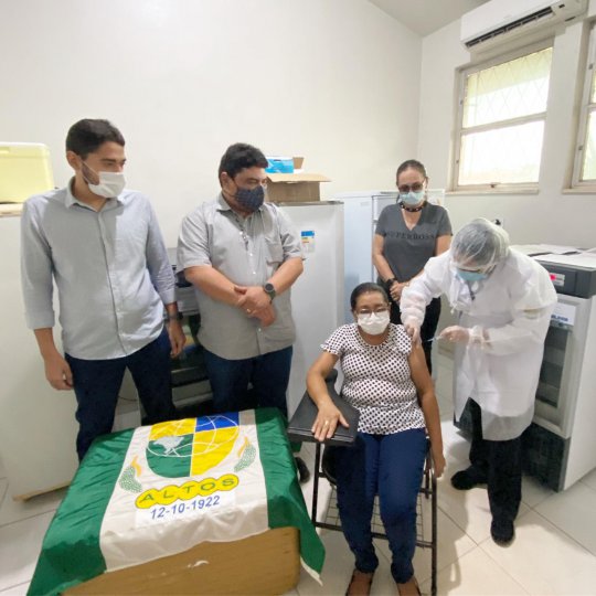 O momento foi marcado com muita emoção e com a presença da Secretária de Saúde, Dr Maria Teresa, Coordenadora de Imunização, Débora e o prefeito de Altos, Maxwell da Mariinha que aproveitou o momento para agradecer todos os profissionais que estiveram ao longo de 01 ano na linha de frente no combate a Covid-19.