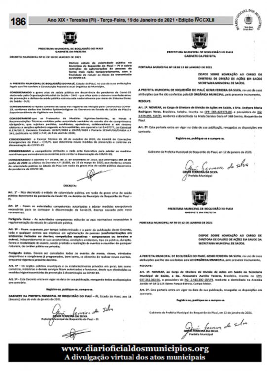 A prefeitura de Boqueirão do Piauí, decretou estado de Calamidade Pública no municipio, em decorrência da Covid-19. O documento leva em consideração vários fatores, como o aumento do número de casos de infectados pela doença, conforme os dados da Secretaria de Estado da Saúde (SESAPI), bem como o decreto estadual N°19.398, de 21 de dezembro de 2020, que prorrogou até 30 de junho de 2021 o estado de Calamidade Pública no Piauí.