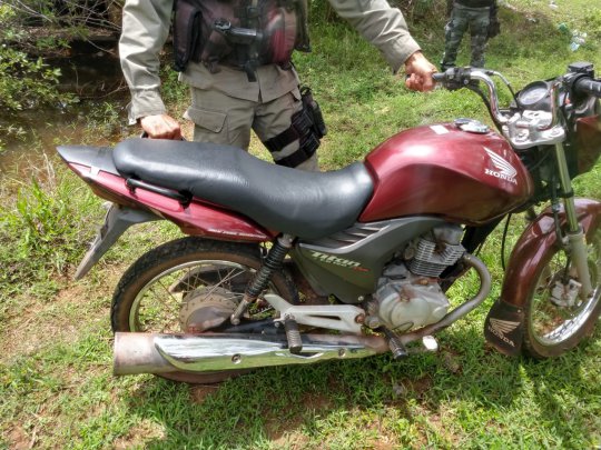 De acordo com o Sargento Enilton, informou que os acusados do roubo abandonaram a motocicleta ao perceberem a presença da PM nas próximidades. O veículo foi recuperado e conduzido para a delegacia a fim de ser devolvido ao proprietário. Os suspeitos estão foragidos.