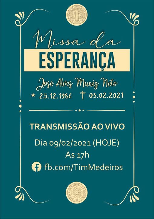 A missa de sétimo dia de falecimento do secretário municipal de Saúde de Capitão de Campos, Muniz Neto, será nesta terça-feira, dia 09, e será transmitida pelas redes sociais de seu pai, o prefeito Tim Medeiros.