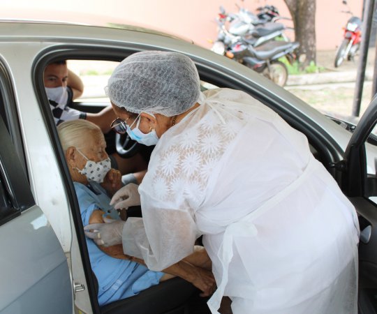 No intuito de evitar aglomerações e não proporcionar riscos, foi realizada a vacinação na modalidade drive-thru, em frente a UBS Horácio Lima.
