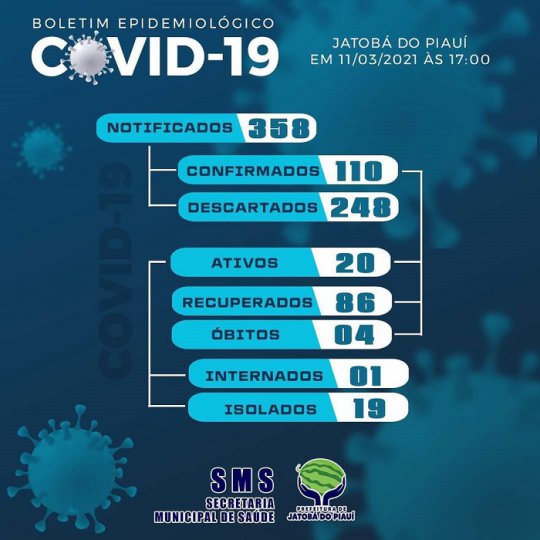 Segundo o último boletim epidmiológico da Secretaria Municipal de Jatobá, divulgado na última quinta-feira (11), a cidade já confirmou 110 casos de covid.