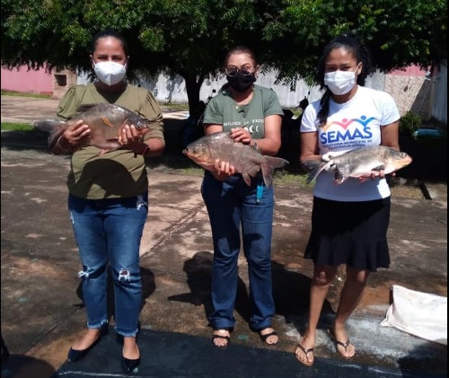 A prefeitura efetuou a distribuição de cerca de 03 toneladas de peixes para as familias do município