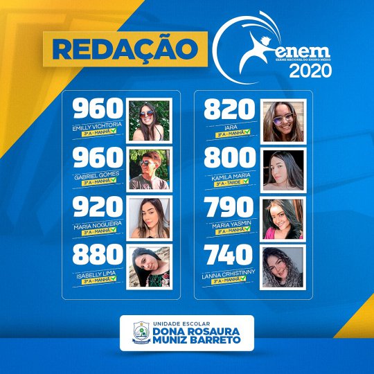 A Unidade Estadual de Ensino Dona Rosaura Muniz Barreto, informou que 03 alunos conseguiram ultrapassar os 900 pontos na prova de redação.