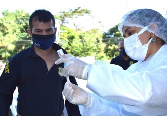 Ao todo, são 50 agentes da Segurança Pública vacinados com a primeira dose contra o coronavírus. Foram 16 policiais rodoviários federais, 10 policiais civis e 24 policiais militares.