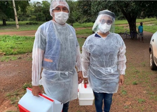Equipe de enfermeiros ao identificar suspeitas de casos realizam testagens à domicílio nas zonas rural e urbana do município.