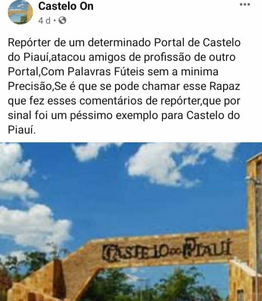 O(A) adm da página, que inicialmente se classificava como propagadora da verdade sobre a gestão pública de Castelo do Piauí e supostos erros cometidos pelo gestor municipal na administração da cidade, decidiu desativar a página que passou a expor e distorcer fatos sobre a vida intima de vários Castelenses.