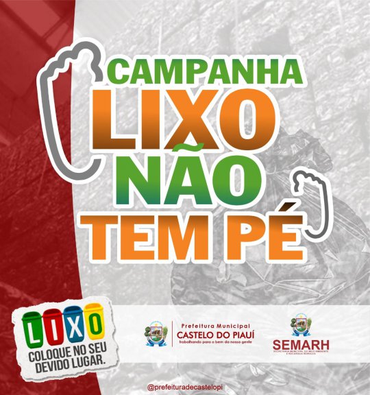 A Prefeitura de Castelo do Piauí e a Secretaria Municipal de Meio Ambiente e Recursos Hídricos (SEMARH) lançaram a campanha virtual "lixo não tem pé", nas redes sociais.