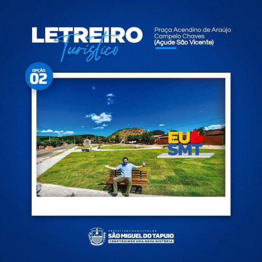 O prefeito do município de São Miguel do Tapuio, Pompilio Evaristo (PSD), abriu uma consulta pública nos seus perfis nas redes sociais, para a escolha do modelo de letreiro a ser instalado na praça do bairro Açude São Vicente, que deve ser inaugurada em breve.