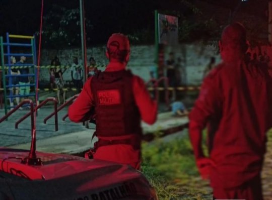 A vítima, identificada como Nadson José, estava sentado em um banco da praça do Conjunto Espedito Resende. Dois indivíduos chegaram em uma moto.