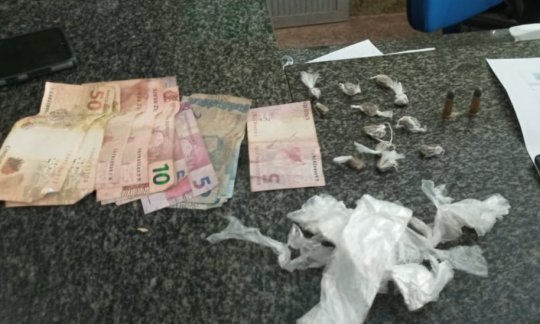 Segundo informações da PM, a primeira ocorrência ocorreu no Bairro Petecas, por volta das 15h30min, onde foi preendido 12 trouxinhas de substância análoga a maconha, 02 munições calibre .32, 01 Smartphone e R$176,00 reais em espécie.