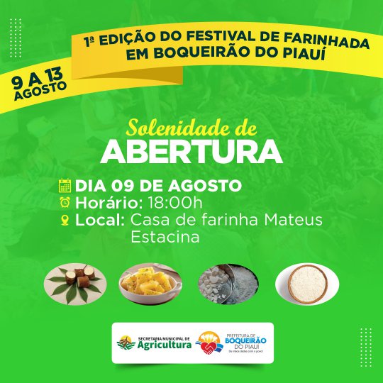 LEIA MAIS - Prefeitura de Boqueirão do Piauí realizará o 'I Festival de Farinhada'