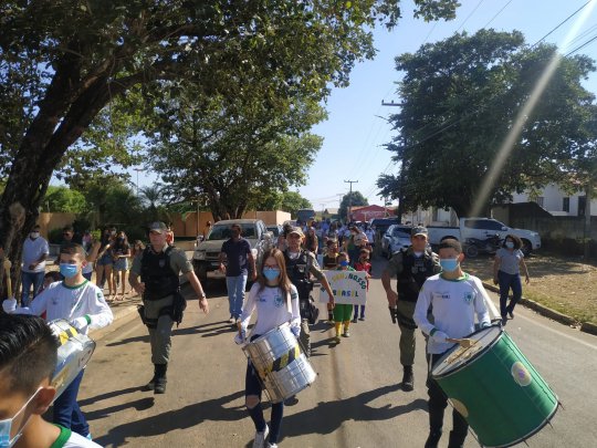 O evento contou com a participação de secretários, diretores, alunos e funcionários da gestão municipal, além da participação da Polícia Militar.