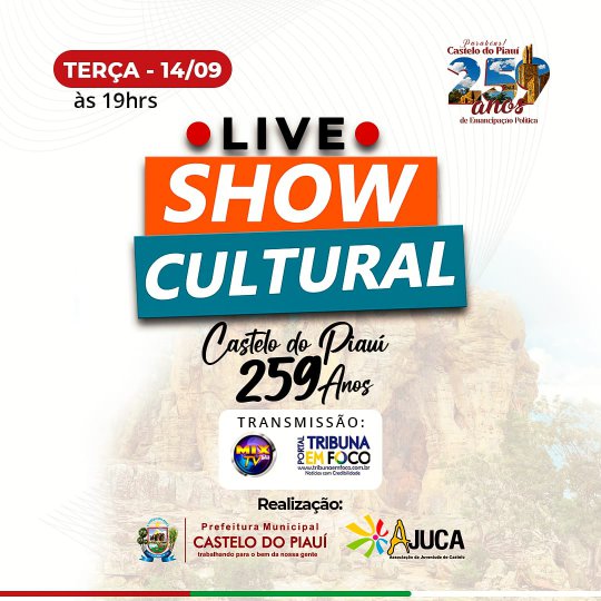 Fechando as festividades em comemoração aos 259 anos de emancipação política de Castelo do Piauí, a AJUCA (Associação da Juventude de Castelo do Piauí) vai promover nesta terça-feira (14), um "Show Cultural".