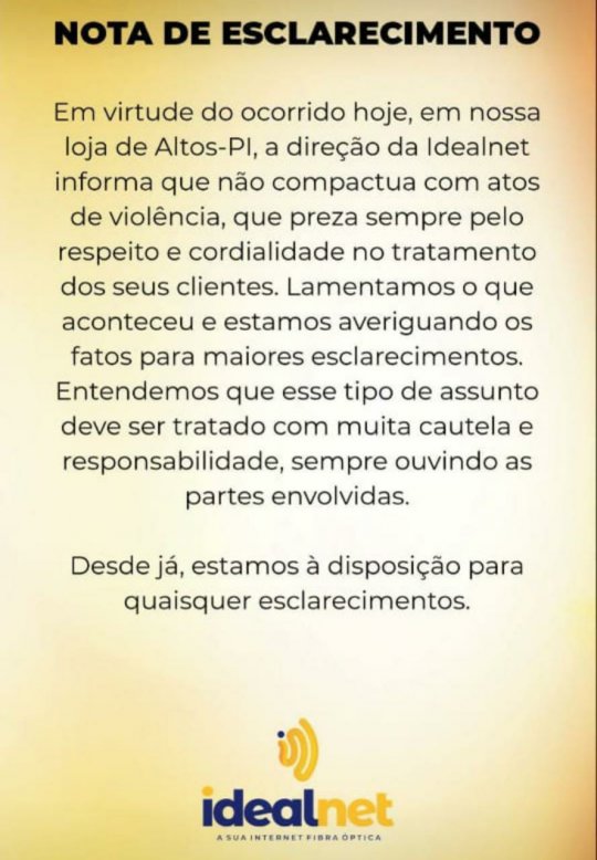 Um funcionário, que não teve nome revelado, da empresa de fornecimento de internet 'Ideal Net', sofreu na tarde desta terça-feira (16) uma tentativa de assassinato por um cliente em frente ao estabelecimento localizado na avenida Francisco Raulino, no centro de Altos (PI).