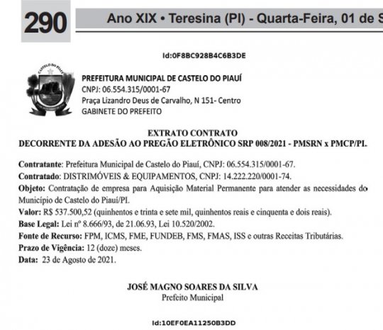 Magno contratou as duas empresas fazendo uma adesão ao Pregão Eletrônico 008/2021 da prefeitura de São Raimundo Nonato-PI.