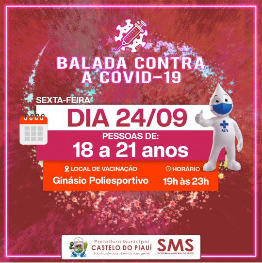 Dando sequência ao público por faixa-etária na imunização contra Covid-19, a secretaria de Saúde de Castelo do Piauí vai realizar a "Balada da vacinação". O objetivo do evento é imunizar os jovens entre 18 e 21 anos.