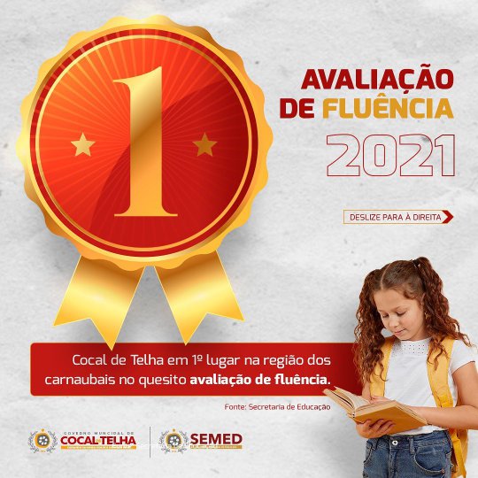O anúncio foi feito pela prefeita Karyne do Rodrigrão através de suas redes sociais nesta sexta-feira (08). "Apesar da pandemia e dos novos métodos a serem implantamos para que a educação nacional continuasse a funcionar, Cocal de Telha, através da prefeitura Municipal e da Secretaria de Educação, continua a bater recordes e demonstrando excelência no ensino. Gostaria de agradecer o secretário de educação Marcelo Barros e toda a sua equipe, professores, coordenadores e diretores, pelo excelente desempenho na coordenação do programa Pró-Alfabetização na Idade Certa e, graças a isso, Cocal de Telha ficou em PRIMEIRÍSSIMO LUGAR em todo o Território dos Carnaubais e em TERCEIRO LUGAR no ranking estadual. Parabéns!", disse a prefeita.