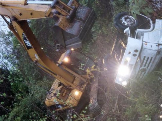 Devido a restrição de visibilidade no local ocasionada por uma forte chuva que caia no momento, ao perder o controle, acabou caindo em uma ribanceira localizada as margens da rodovia, ficando com os pneus virados para cima.