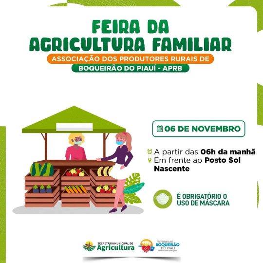 A prefeitura de Boqueirão do Piauí através Secretaria Municipal de Agricultura e da Associação dos Produtores Rurais - APRB, convida todos para mais uma edição da Feira da Agricultura Familiar.