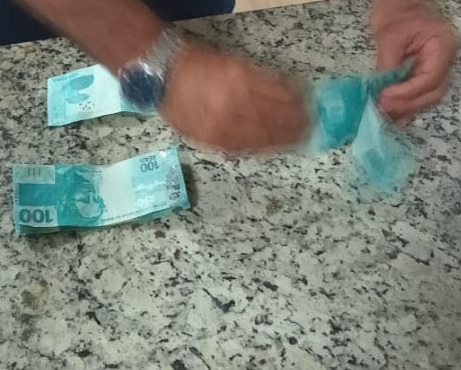 De acordo com a polícia, uma guarnição da Força Tática recebeu denúncias feitas por comerciantes locais sobre um derrame de dinheiro falso na cidade.