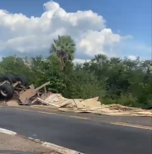No final da tarde desta terça-feira (14) um caminhão carregado de madeiras em folhas, tombou em uma rodovia próximo ao município de Boqueirão do Piauí.
