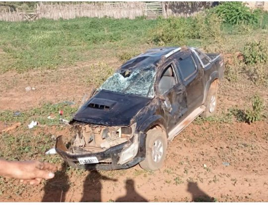 Após o acidente, as vítimas que sairam com leves escoriações foram socorridas por populares e o veículo modelo Toyota/Hilux de placa FLE-3377, cor preta, ficado bastante danificado.