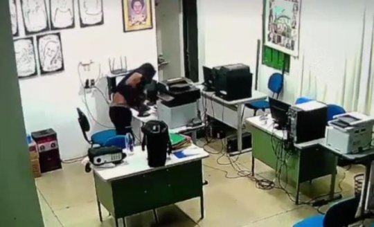 No vídeo, é possível observar que o homem está munido de uma arma branca (faca) na cintura, enquanto procura objetos de valor na diretoria da escola. Toda a ação durou poucos minutos.