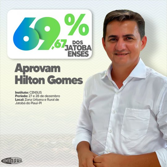 Uma pesquisa do instituto “CENSUS - Institutos de pesquisas”, realizada entre os dias 27e 28 de dezembro deste ano, aponta que a maioria dos jatobaenses aprovam a gestão, pontuando um total de 69,67% no índice de aprovação geral.