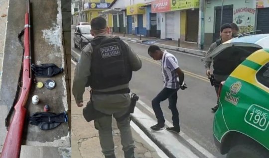 Um homem identificado apenas por Reginlado foi preso por policiais da 2º CIA da Polícia Militar de São Miguel do Tapuio, após atirar de espingarda bate bucha contra uma mulher, foto ocorrido na comunidade Coqueiros, zona rural do município. A polícia também apreendeu a arma do crime.