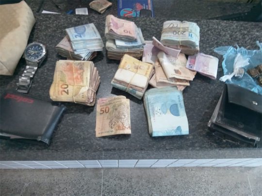 No local foram apreendidos R$ 22,175, além de maconha, materiais utilizados comumente para embalar drogas, um relógio de pulso e seis celulares que teriam sido usados como "moeda de troca" por usuários.