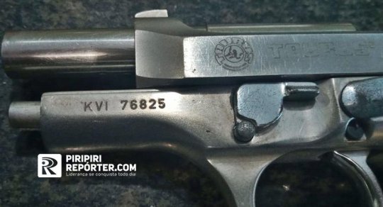 Quando a companheira da vítima estava entregando as crianças ao avô, a guarnição suspeitou de uma das bolsas delas ( das crianças). Ao verificar, foi encontrada a pistola e a quantia em dinheiro.