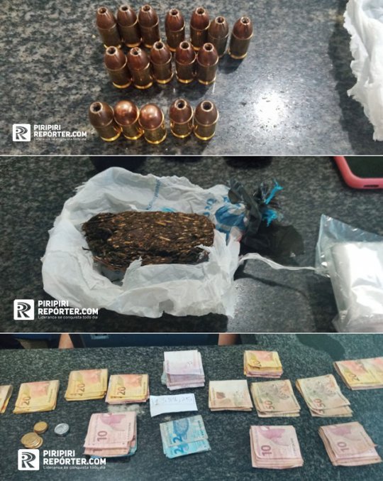 Na casa do homem que foi executado em Piripiri, nesta terça-feira (11), a Polícia Militar apreendeu uma pistola Taurus KVI 76825 com 17 cartuchos intactos, cerca de 30 gramas de maconha e R$ 1.390.75.