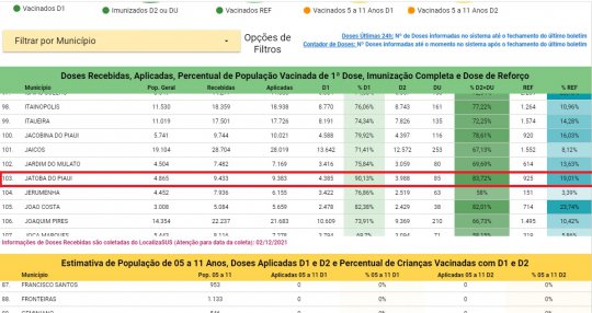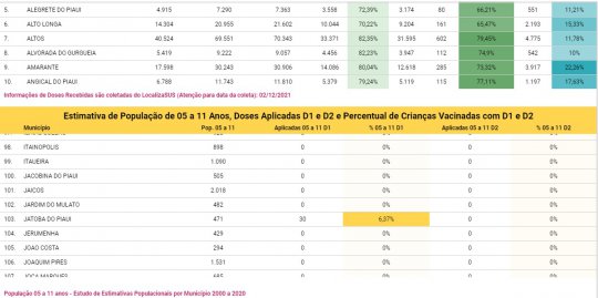 Ainda em relação a vacinação, o município está com 6,37% na aplicação de primeira dose da vacina para crianças de 5 a 11 anos, ganhando destaque no painel da SESAPI.