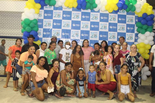 A prefeita Genir Ferreira, acompanhada de secretários municipais, vereadores da situação e outras lideranças políticas, entregou a quadra que era um sonho da comunidade.