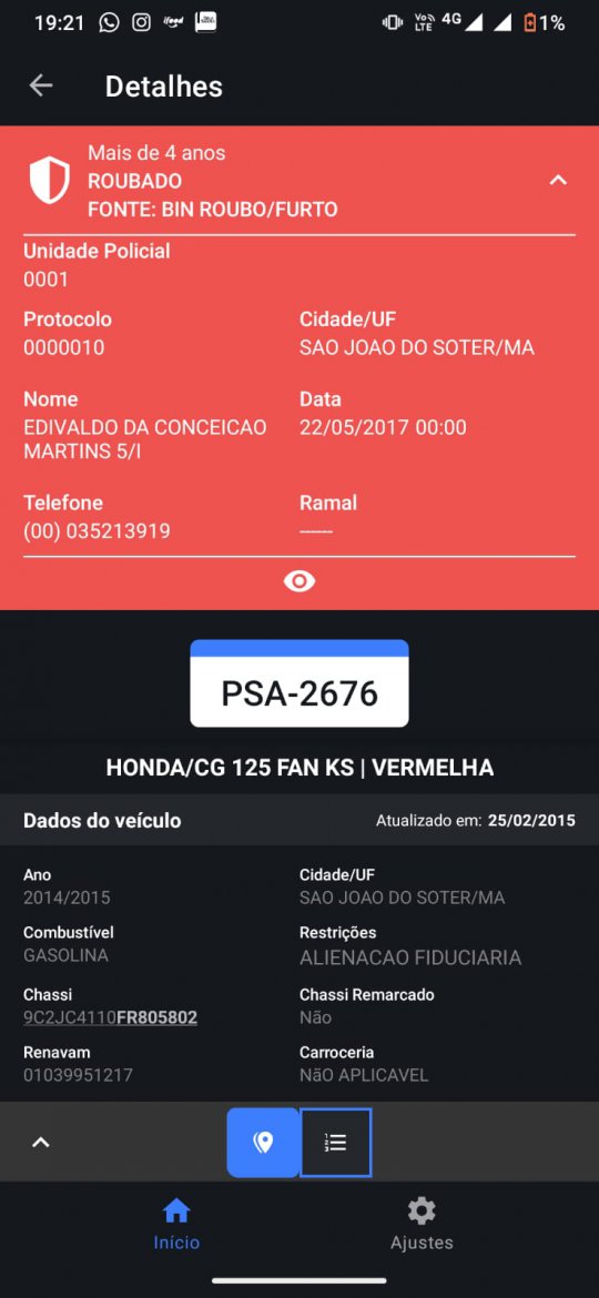 Ao consultar a placa, PSA-2676, os PMs descobriram que se tratava de uma moto roubada, em 2015, na cidade de São João do Sóter, no Maranhão.