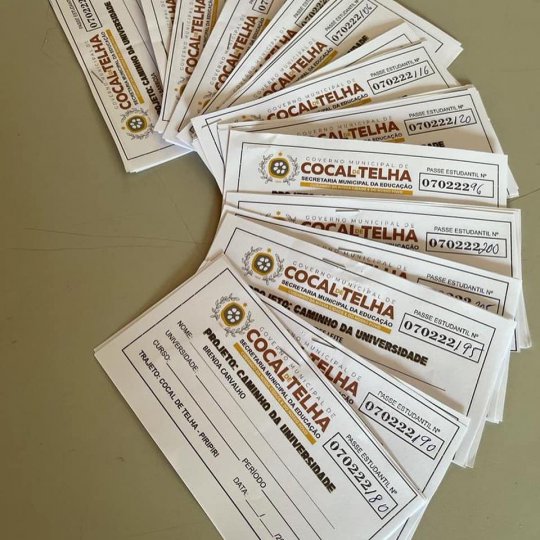 A Prefeitura de Cocal de Telha (PI) através do secretário de administração Rodrigão e da Secretaria de Educação, realizou nesta terça-feira (07) a entrega dos passes estudantis por meio do projeto Caminho da Universidade, que irá garantir o transporte aos estudantes de cocal de Telha para as cidades de Piripiri, Campo Maior e Teresina.