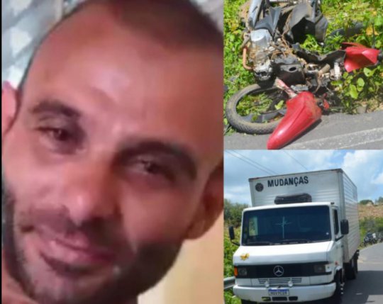 O acidente foi uma colisão frontal entre moto e caminhão baú