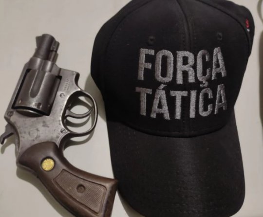 Diante das informações foram feitas diligências na cidade, em seguida um veículo suspeito foi abordado e encontrado um Revólver, Calibre .38.
