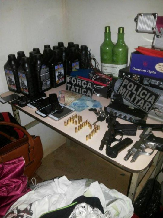O jovem menor de idade identificado pelas iniciais G. R. da S. residente do Bairro Promorar, em Teresina-PI e Aldo Franklin de Sousa Ferreira, também residente em Teresina, seguia em fuga pela estrada entre os dois munícipios quando foram abordados e identificados. Com eles os policiais encontraram duas pistolas 380, R$ 1.370,00, jóias, óleo lubrificantes, sete aparelhos de celulares, um Pálio roubado em Teresina para a ação, uma moto também tomada de assalto durante a fuga, e outros objetos.