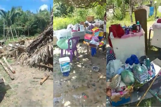 A residência de taipa com telhado de palha ficou completamente destruída, além dos poucos móveis que a família já tinha, foram todos perdidos. Leonice e Gilson possuem quatro filhos e ainda está à espera do quinto filho.