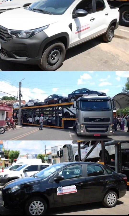 Um caminhão cegonha com oito veiculo desviados com a logomarca da prefeitura, chamou a atenção de populares da cidade de Castelo do Piauí na manhã desta quarta-feira. O prefeito Magno Soares (PT) marcou para esta data a entrega de uma frota de carros para várias secretarias.